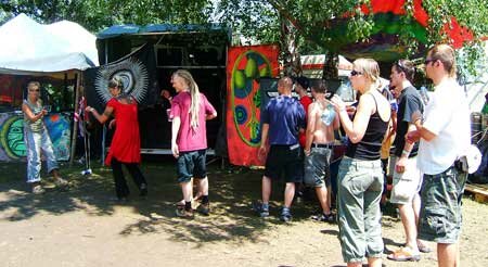 THANKS TO MAYAPUR SOUND SYSTEM,VLAD+KAT,ALL RAVERS,D.J'S,KIDS,DANCERS,BARSTAFF AND ANYONE ELSE INVOLVED. PUT IT IN YOUR DIARY FOR NEXT YEAR SAME TIME (1-5 JULY) SAME PLACE! |